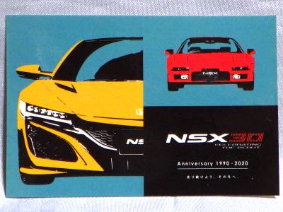 2020年11月17日から30日にかけてウエルカムプラザ青山にてNSX生誕30周年特別展示イベントを開催。 ここで入手したというカタログと記念ステッカーのセットが11月21日からヤフオクに数点出品され、その第1号を落札して入手。 ステッカーはともかくハードカバーカタログを来場者全員に配るのは無理そうなので、11月21日の歴代開発者によるトークショーに抽選で招待された30名の中のどなたかが出品されたようだ。サイズは6×9cm。 後日出品者の方にお話を聞いたところ、青山のイベントでアンケートに回答したら「数量限定、この会場のみのステッカーです。カタログもどうぞ」という感じでもらえたという。 |