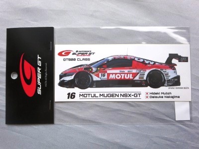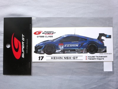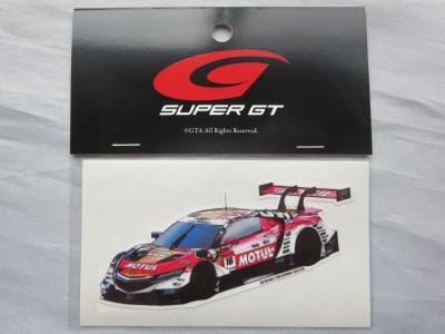 2019年5月スーパーGT第3戦鈴鹿にて、スーパーGTオフィシャルショップのブースにて購入。 前シーズンの売れ残りを販売しており(ただし定価の税込300円のまま)新シーズンのものはまだできていないようであった。 GT500クラス参戦車両の全てのステッカーが製作販売されているが、ブースではNSX5種のうちARTAとRAYBRIGのみ完売しており(オフィシャルサイトでは2019年6月現在全種購入可)残りの3種を購入。 後日オフィシャルサイトでARTAとRAYBRIGも購入。 1枚300円。サイズは5.9×14.0cm。 |