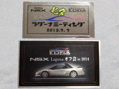 | 2016年12月、愛知県のラグーナ蒲郡で毎年行われているNSXオーナーのイベント「ラグーナミーティング」のステッカー7種を愛知の元オーナー様より頂く。上は2013年3月開催の七夕ミーティング、下は2014年のオフ会のもので、共にKREIS(クライス)主催。KREISは関東本部と東海支部のあるNSXオーナースクラブ。 | |