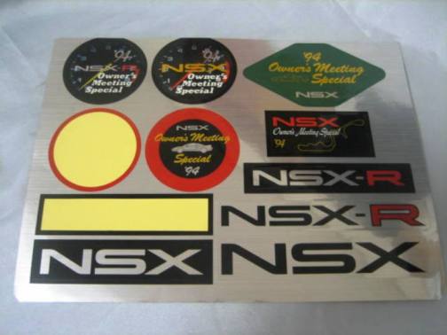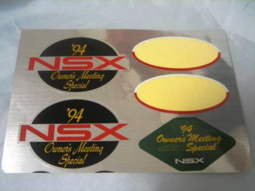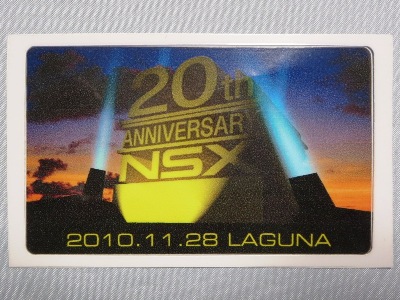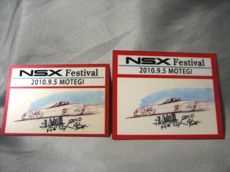 | 2010年9月5日に「ツインリンクもてぎ」で開催された「NSX 20th Festival Motegi」参加者のお一人であるY氏がオリジナルで製作されたシール。NSXデザイナー・中野氏のサイン入りイラストを組み合わせている。小さい方はパール仕上げ。サイズは小5.0×7.0p、大6.0×7.4p。 | |