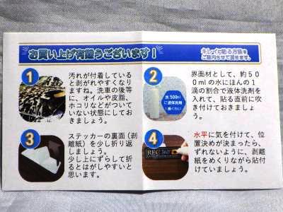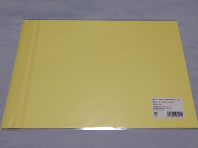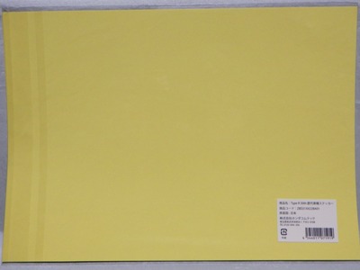 | 緑地にオレンジ文字。サイズは3.5×7.0p。貼付前の状態。 | |