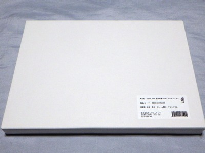 | パールホワイト地に金と赤の文字。デザインが若干これまでと変わっている。サイズは3.5×7.1p。貼付前の状態。 | |