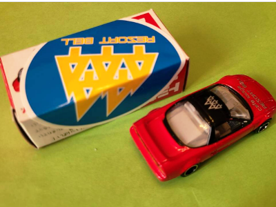 【追加情報・参考画像A】 2022年1月19日にヤフオクに2度目の登場となったリゾートベルシール貼付箱付きモデル。 ロゴがタンポ印刷ではなくシールということもあり、NSX78トミカ初期の二次加工モデルの中では、感動倶楽部トミカやレタックストミカと比べると流通量が少ないのは同じながら人気はそれほどでもないリゾートベルトミカだが、この箱のせいで17,500円まで高騰し落札できなかった。入手された方がショップのシールを自分で貼った可能性も考えていたのだが、複数存在するのであれば、これが公式なのかもしれない。 しかし、2018年11月に出品されたシルバーモデルの方は白箱に小さいリゾートベルのシールが貼られており(21,550円で落札終了)、過去の出品物の多くは、シールなしの通常箱か、箱なしのものが多いので(私の所有品も、レッドモデルはシールなしの通常箱、シルバーモデルはシールなしの白箱)謎である。 おそらく、当時カフェロッジの経営をされていた制作者の方が、トミカに興味のない一般のお客さんにも配布したため、箱が残らなかったのだと思われる。 最近注意喚起させていただいているモデルのようにコピー品が作られないことを願っている。 ちなみにネットで調べてみるとスカイライン2000GTやミニクーパーなどが存在しているようである。 |