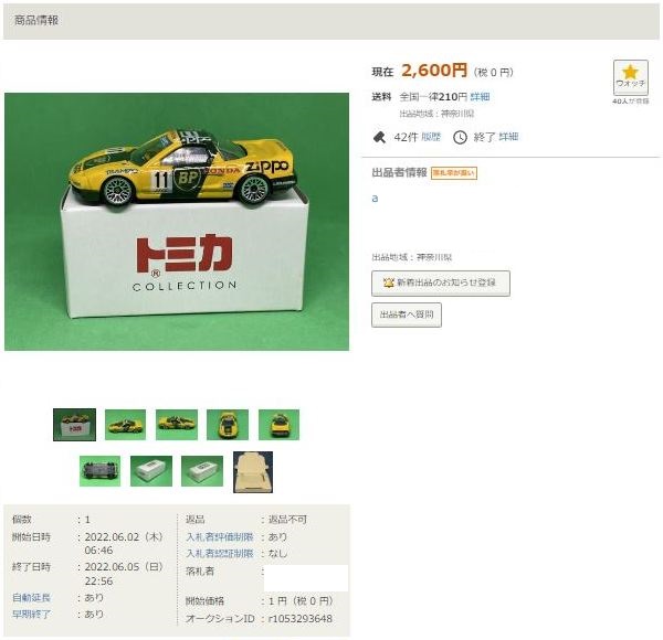 ゼッケンナンバー42。7月26日に落札できず終了。