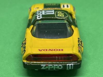 Hマークは白色タンポ。フロントウインドーに「HONDA NSX」、サイドに「FHONDA NSX Castrol」と白色タンポが入る。2014年12月ヤフオクにて入手。 感動倶楽部が特注したNSXトミカは、前述したように5タイプ存在する。ゼッケンナンバーPP65がタンポされた78-6-16、ナンバーのないゼッケンの枠のみがタンポされた78-6-9A、その78-6-9Aのルーフに某F1ドライバーのサインをタンポした78-6-11B、ゼッケンナンバー7がタンポされた78-6-10、その78-6-10のルーフに某F1ドライバーのサインをタンポした78-6-11である。 78-6-10と78-6-11との違い同様に、78-6-9にもルーフにサインのあるタイプとないタイプがあるのだが(当サイトでは9A、9Bと呼称する)、なぜかトミカの分類を行っている大御所コレクターM氏はこれを分類していない。ルーフのサインの版権問題が絡んでいると思われる。トミカ関連のムック本では78-6-11の詳細が非公開になっているのだが、M氏に以前伺ったところによると、これもサインの版権問題とのことであった。78-6-9Bのサインありモデルについては、詳細を非公開にするくらいなら最初からナンバーを与えないでおこう(なかったことにしておこう)という判断になったのかもしれない。 最近ではヤフオク相場も下がり、2020年に入ると5月16日に出品されたものが31,500円で落札されている。 |