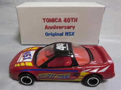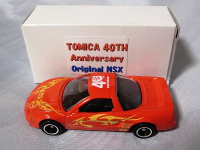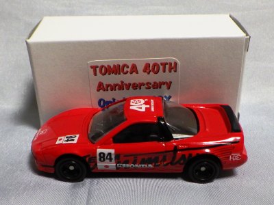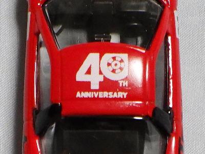 | 2003年5月末にアメリカでレーシングチャンピオン「THE FAST AND THE FURIOUS(ワイルドスピード)」シリーズ第6弾6車種の中の1つとして登場した78-6-46がベース。ルーフ上にトミカ40周年記念のロゴをタンポしたもの。トミカが40周年を迎えた2010年に制作されたものと思われるが、タカラトミーのオフィシャル商品ではなく、個人またはサークル制作のモデルと思われる。ヤフオクでも数回出品されたことがあるので少数ながらもそこそこ生産台数はあるようであるが、ベースモデルから考えて、どんなに多くても20〜30台程度ではなかろうか。ネット上での情報は皆無である。2016年3月に入手。 | |||