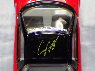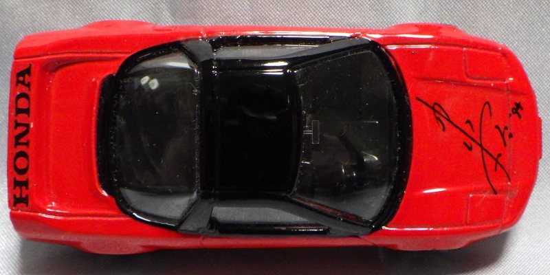 コレクションの大先輩で、2021年にコレクターを引退された神奈川のK氏からいただいたもの。 ボンネットに中嶋悟氏のサイン、リアウイングにHONDAのロゴが、それぞれシールで添付されている。 |