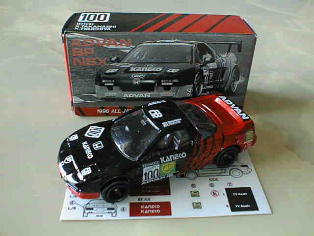 | ミニカーショップ「ガリバー」の特注品。チーム国光JGTC96仕様。おなじみのアドバンカラーに「100HONDA ADVAN BP KANEKO RACING」など多数の白色タンポが入る。箱も専用。 | |||