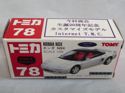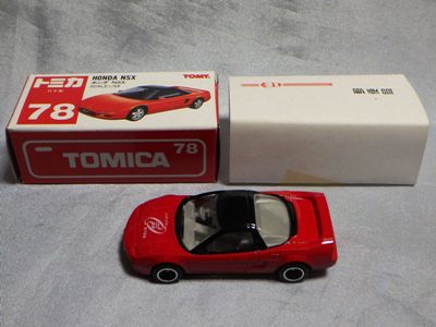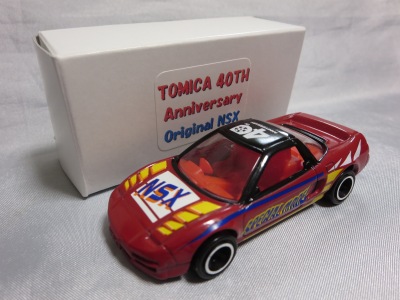 2020年8月5日に、いつもお世話になっているミニカーショップ「ドリームボックス」さんとのコラボ企画「NSX生誕30周年記念トミカ」の、先に完成したミニカーのみが届いた。 専用箱は8月26日に到着。レッド専用の箱はなく、メッキバージョンの流用になる。 これらはあくまでクラブやオーナーさん向けに作った商品であり、一般に販売するためのものではない。 ただし、銀メッキベースと43トミカの通常品レッドベース、トミカプレミアムベースの3種のみ、ドリームボックスさんに注文が可能である(在庫がなくなり次第終了)。 この78レッドモデルを含む残りについては、製作者サイドが趣味で少量製作したものなので、注文して購入することはできない。 このベースモデルは1991年8月に発売されたNSXトミカの第1号(実車の発売は1990年9月)。30年近く前のモデルなので現在はヤフオクでも入手困難であるが、個人的にストックしていたものを利用して製作した。 |