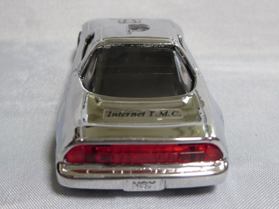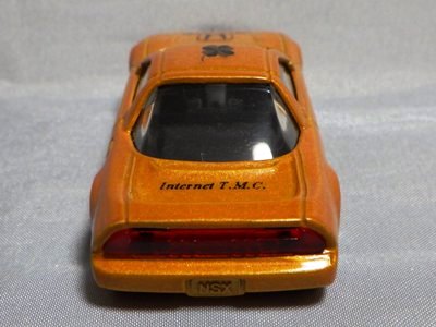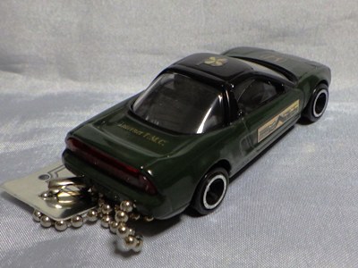 「THE FAST AND THE FURIOUS」 2003年5月末にアメリカ・アーテルより発売されたレーシングチャンピオンズ「THE FAST AND THE FURIOUS」シリーズ第6弾6車種の中のNSX。「THE FAST AND THE FURIOUS」は2001年10月に「ワイルドスピード」という邦題で日本で公開された映画。エクリプス、RX-7、スープラといった日本のスポーツカーがフルチューンされて街中を爆走する話で、なかなか面白い作品でした(NSXは劇中に登場していませんでしたが)。これが実は、まんまトミカで、目を引くボディいっぱいのファイヤーパターンのみならず、サイドにはチューニングメーカーのロゴが細かく入っています。ネットオークションにもドッと出て、私もアメリカ在住の出品者から購入しました。ミニカーマガジン03年7月号にも紹介されているように、トミカがベースになっているのはランエボWと、このNSXのみのようです。今後同シリーズにトミカベースの車がリリースされる可能性は大きいと見ていましたが、03年8月に公開されたパート2に一瞬登場したNSXが12月上旬にモデル化されたものは、トミカではなくなっていました。劇中のマシンが派手すぎてトミカでは限界があったようです。こちらのモデルは「11.その他のミニカー」のページで紹介しています。 |