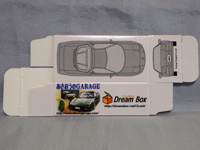 ミニカー本体が先に完成し、専用箱の完成を待っている間に、その箱の校正刷り(色校正)を入手できた。 提供してくださったのは、今回の企画の専用箱を製作してくださっている福岡のW氏。 W氏は、あの今村商会のNSXブラックパトカーの専用箱も製作された方で、信州オフのメンバーでもある。 校正刷りは本印刷前に行い、誤字脱字・色の具合を確認するために行うもので、表面加工(プレスコート)はされていない。通常は印刷内容確認後に廃棄されるもので世に出回ることはないのだが、W氏のご厚意で頂くことができた。 サイズは15.6×17.0cm。 |