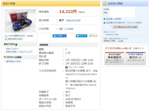 して入札するつもりだったが、僅か1日で即決価格の25,000円で落札されてしまった…。
