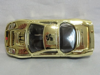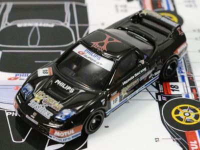 東京の方が2021年6月8日に43ベースのカスタムトミカAstemo NSX-GT仕様と一緒にヤフオクに出品された商品を落札した。 スポンサーロゴ等はタンポ印刷ではなくデカールで、撮影中にタイヤのロゴが剥がれてきて困った。 製作者の方が2021年1月31日にご自分のブログにこのモデルをアップされているのを見つけた(Astemoは2月2日にアップ)。 |