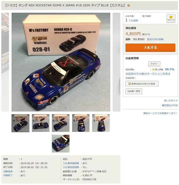 ▲2019年5月29日にヤフオクに初出品されたM's FACTORY製2次加工トミカ