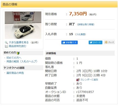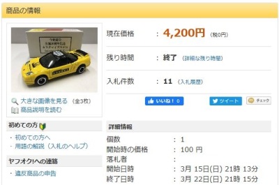 ▲2018年3月7日にヤフオクに初出品された2次加工トミカ