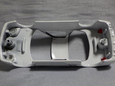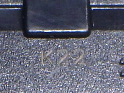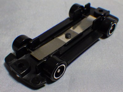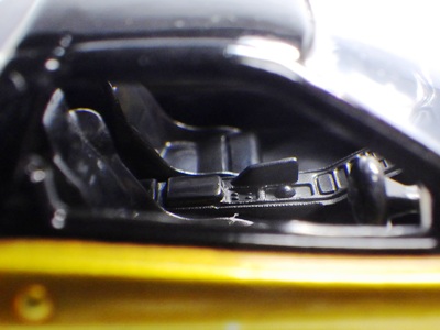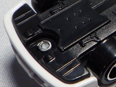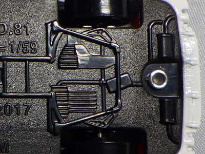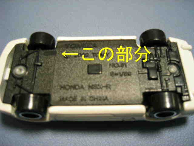 2005年4月にコレクターのK氏から、昨年あたりから裏板の左上(左前輪の付け根あたり)の肉盛り部分が小さくなった旨、ご報告をいただき、さっそく久々に店頭で通常品をいくつか購入し、問題の箇所を確認したところ、確かにこれまでの5mm程度のものから半分程度の大きさに小さくなっていた(画像は変更前のもの)。なぜ理由されたのかは不明。今回購入し肉盛り部分が小さくなっていたものの中で一番古かったのは2004年9月製造のもの(パッケージの刻印が「I04」)。そ