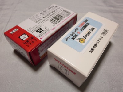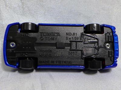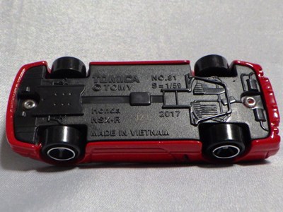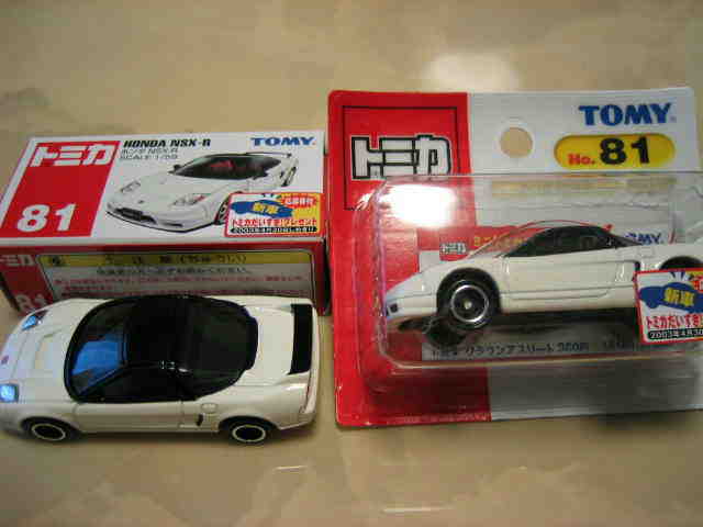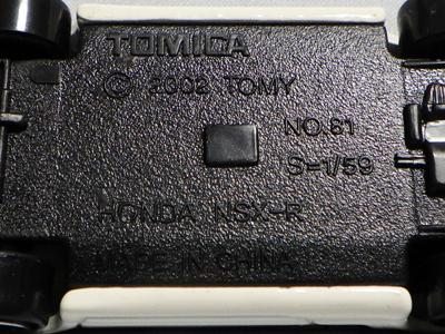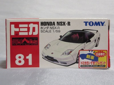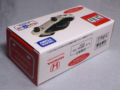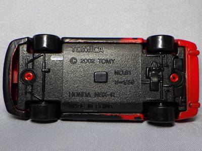 | 2002年12月21日登場。ヘッドライトが固定式になった2代目のNSX-Rがモデル化。ブリスターパックと紙箱の両方購入。 紙箱には製造年月の刻印なしの1種のみ。ブリスターパックはK02(2002年11月製造)とA04(2004年1月製造)の2種を入手。裏番変更モデルについては後述。中国製。 | |||