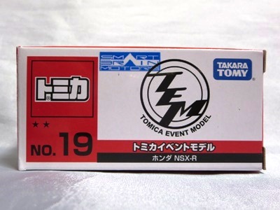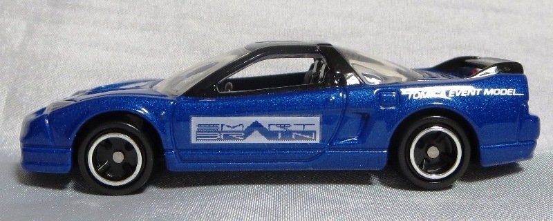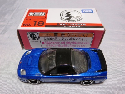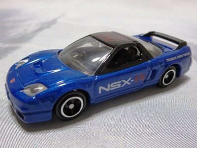 2018年にトミカ博等のイベント販売用に製作されたモデル。 「トミカ博 in OSAKA」(4月26日〜5月6日開催)の告知は2月20日、「トミカ博 in NIIGATA」(5月2日〜6日開催)の告知は2月27日に行われた。 2013年のトミカ博モデルにもブルーのNSX-Rがあったが、あちらはボンネットがブラックに塗装されており、イベントモデルロゴは両ドア部分にあった。今回のモデルは、ボンネットはボディ同色でロゴはリアフェンダーに入ってい る。 定価は600円(税別)だが、会場で購入する場合は入場料が別に900円必要であった(前売券は大阪が800円、新潟が700円)。 |