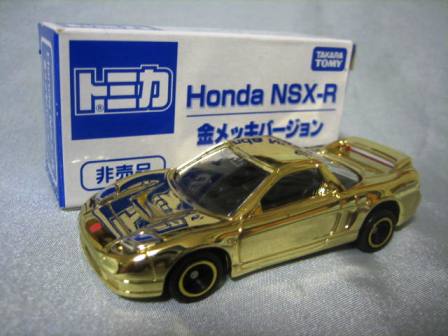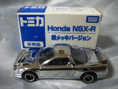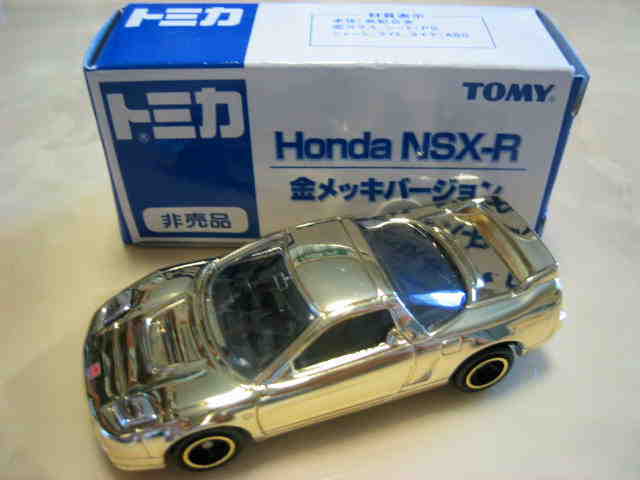 | 2003年9月6日〜10月31日にトイザらスで トミカ・プラレール商品を3,000円以上購入すると先着3万名にポストカード&スクラッチくじ付専用応募ハガキがもれなくもらえ、そのスクラッチくじで金ピカ賞が出たら、その場で「金ピカNSX-R」が、銀ピカ賞が出たら「銀ピカランエボ」が合計5000名にプレゼント された。8月22日〜31日に池袋で開催されたイベント「トミカ博 in TOKYO」にて、ゲームの景品としても配付された。ちなみに応募ハガキの抽選で当たるのは「トイザオリジナルハイパートミカパーキング21」(50名)と「プラレールはやてクルリ鉄橋往復セット」(50名)。 | |||