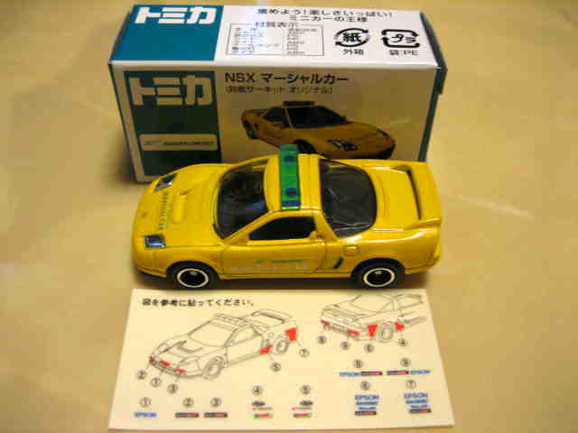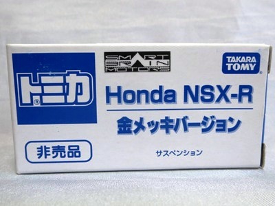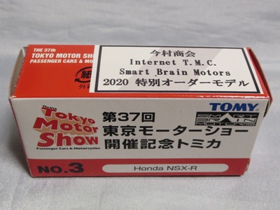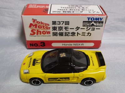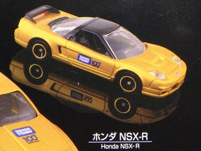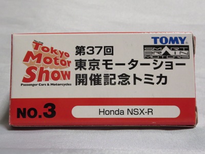 | 2003年10月22日より開催された東京モーターショー会場にて、トミーは記念トミカ全9種を販売したが、その中のNo.3がNSX-R。両ドアとトランクにタンポが入る。 | |||