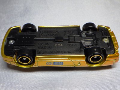 「L0109」の箱と「B0210」のブリスターパックの2種を入手。 ミニカー自体は裏板の刻印以外違いはないが、あえて挙げればリアアンダーディフューザーの黒色塗装部分の幅が異なっている。 2022年1月にコレクターの先輩から大量のブリスターパックを入手し、D0109(2009年4月1日製造)は中国製、E0409(2009年5月4月製造)はベトナム製であることが確認できた。これで、中国製からベトナム製への移行期が大きく絞られ、その1か月間であることが判明した。 D0109が中国製最終モデルで、E0409がベトナム製の最初のモデルである可能性もある。 |