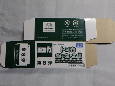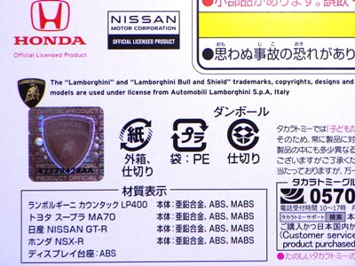 | 2008年9月20日 発売。4種類発売されたうちの「レースカー」がNSX。レーサー仕様のプラキッズが付属。パッケージの刻印は「H1508」(08年8月15日製造)。 | |||
