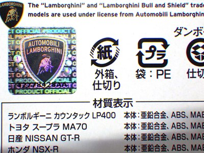 ヤフオクには前日の9月21日初登場。 2004年5月にランボルギーニ社がイタリア警察に寄贈したガヤルドのデザインを元にしている。 品番0134。パ ッケージの刻印は「H0912」(2012年8月9日製造)。ベトナム製。