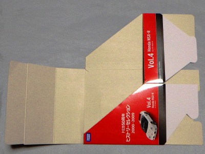 2020年8月24日に「NSX生誕30周年記念トミカ」の専用箱を製作してくださっている福岡のW氏から頂いたもの。 校正刷りと異なり、表面加工(プレスコート) がなされたツヤツヤのもの。 サイズは20.0×35.5cmだが、画像ではスキャンした自宅のプリンターのサイズの関係で右端が切れている。 |