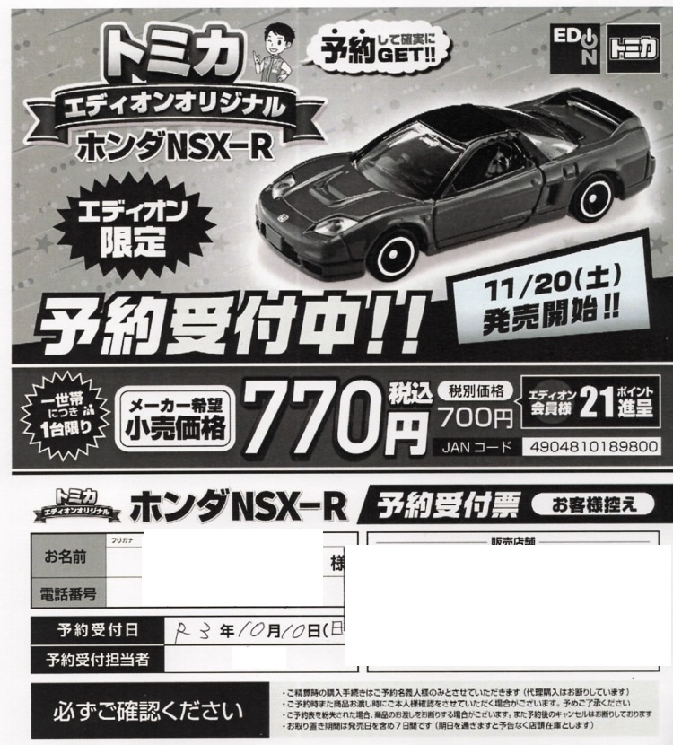 81-3-? エディオンオリジナル ホンダNSX-R 赤/黒/赤/\770(税込)★★ |