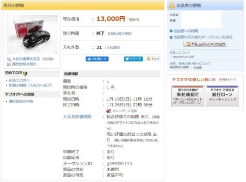 3月7日にヤフオクに初登場。ベースモデルをコレクター自身が用意するというもの。