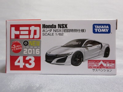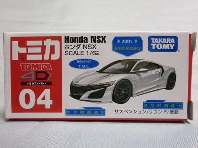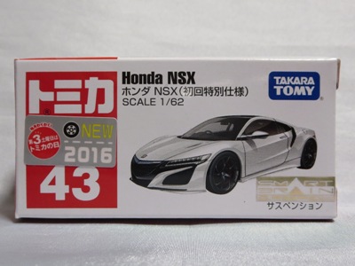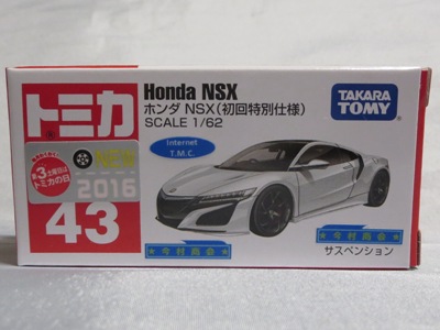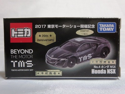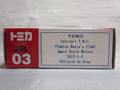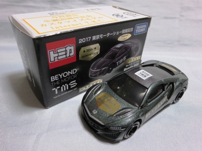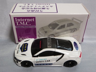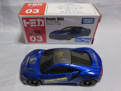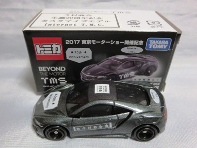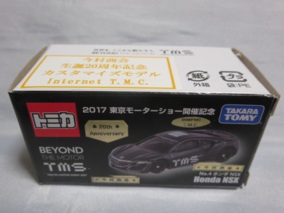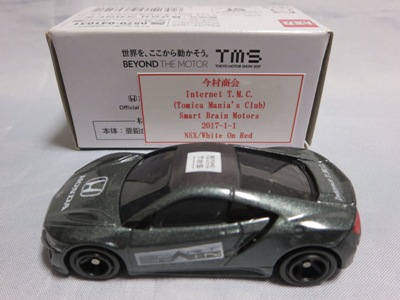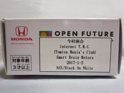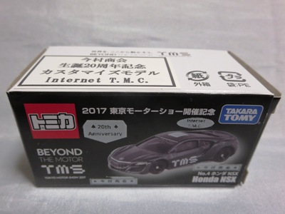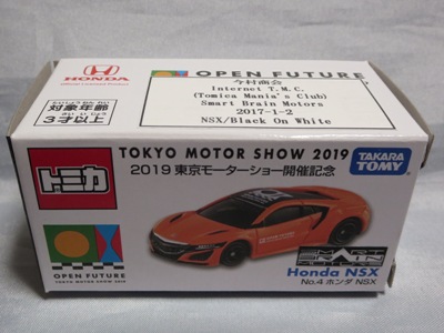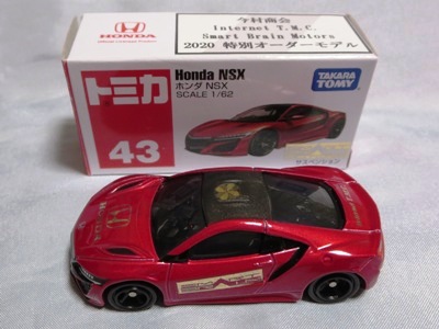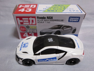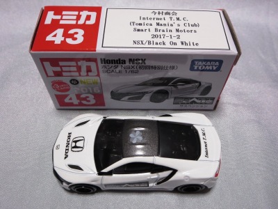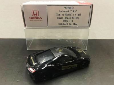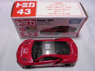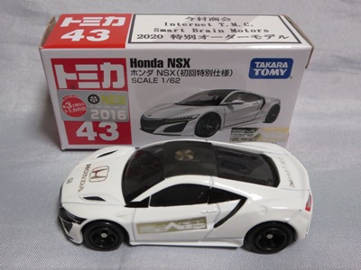 2017年1月29日ヤフオク初登場の2次加工モデル。製作は、これまで多くの特注モデルをリリースされてきた今村商会さん。ボディに入っているロゴはタンポ印刷ではなく全てシールとなっているが、上手に貼付されており、それと感じさせない仕上がり。 レッドモデルの箱のシールに「2017-1-1」という数字が入っていたので、これがオフィシャルな発売日なのかと思ったが、ホワイトモデルでは「2017-1-2」となっており、どうやら単なる品番のようだ。 ※ちなみに2019年12月25日にヤフオクに初出品されたトミカ4D(2019年1月19日発売)をベースとしたブルーモデルでは「2017-1-3」となっている。 ボディの両サイドと箱に貼付される「スマートブレイン」のロゴは、2003年に放映された「仮面ライダー555(ファイズ)」に登場する秘密結社「スマートブレイン社」のもの。製作サイドの趣味と思われるが、「スマートブレイン」のスポークスウーマン(最近は「スポークスパーソン」と呼ばれる)であったスマートレディの愛車がNSX(青のNA2)であったことからの着想か。 2019年12月25日にも出品され、通常品レッドモデルベースが9,800円で、初回限定品ホワイトモデルベースが14,520円で落札された。 ちなみに同時に出品された東京モーターショー2017記念モデルベースは14,550円、東京モーターショー2018記念モデルベースは15,150円で、トミカ4Dベースは12,530円で落札されていた。 |