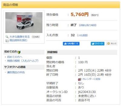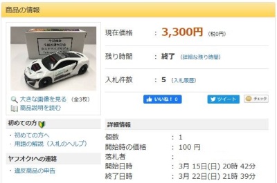 4月12日に出品され4月18日に落札終了した6種 のうち、オフィシャル以外のモデルのみ掲載。