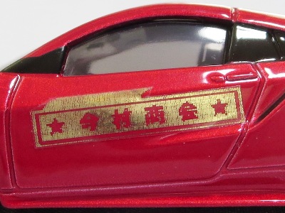 2020年2月23日に発売された9種セットの中のNo.1モデル。 ボンネットと両ドア、トランク上に、レッドベースのシールが貼付されており、パッケージにも同様のシールが貼付されている(ドア用のシールは微妙に形状が異なる)。 |