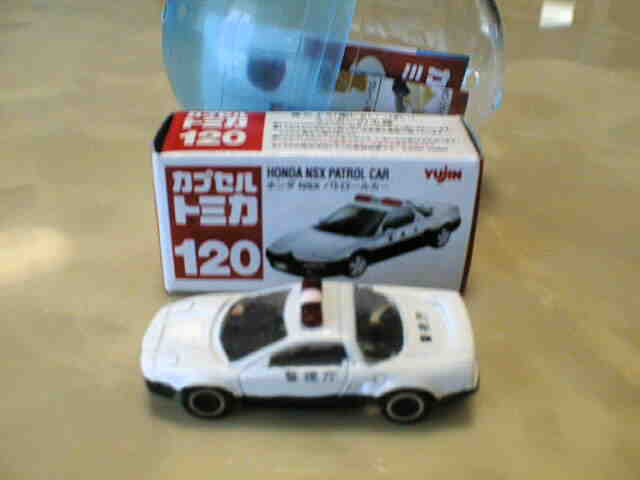| 名前の通りカプセル入りのガチャポン製品。発売元はユージン。2001年5月に第1弾、7月に第2弾が発売され、その第2弾にNSXがラインナップされていた。 | 78とともに当時通常品にラインナップされていた120パトカーをそのままスケールダウン。78同様に本物そっくりの箱付き。 | ||