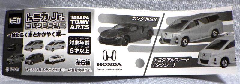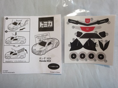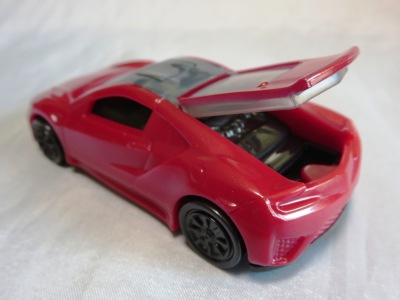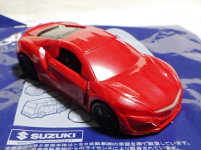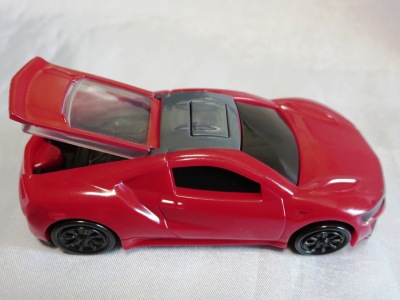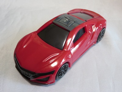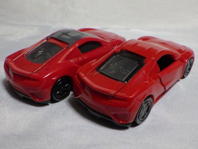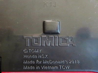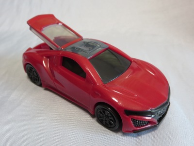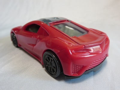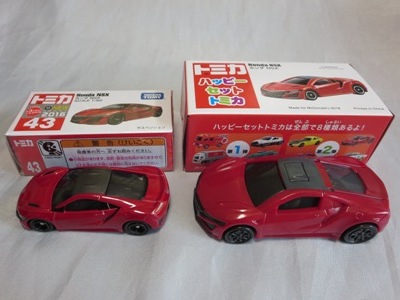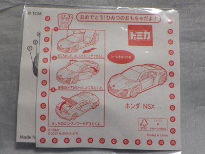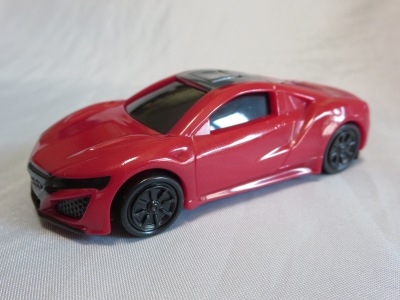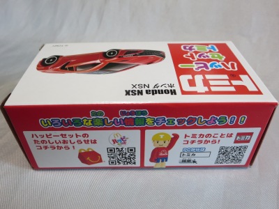 2018年4月6日、マクドナルドがNSXを含むトミカが付属した「ハッピーセット」を4月13日から期間限定で販売することを発表。 「ハッピーセット」は、チーズバーガーやチキンマックナゲットなどのメインメニュー、サイドメニュー、ドリンク、おもちゃがセットになった子供向けのメニュー。 正確には、男の子向けの「ハッピーセット・トミカ」と女の子向けの「ハッピーセット・ハローキティ」があり、前者の第2弾として4月27日から5月10日まで販売される「スポーツカーシリーズ」の内容が、「ホンダNSX」「スバルBRZ」「トヨタ2000GT」「ランチア・ストラトスHFラリー」の4種 。 通常販売されているトミカにはない仕掛けが追加されているのがポイントで、NSXにはルーフを押すとトランクが開くというギミックが用意されている。 ちなみに5月11日から販売される第3弾では、第1弾と第2弾の8種の中からいずれか1つのトミカがもらえるので、トミカが選べないというリスクはあるものの、5月10日までに買い逃した場合も再チャレンジのチャンスがある。 第1弾、第2弾でもトミカが選べないのは同様(ブルーのブラインド袋のサイズは18.0×12.3cm)。 したがって店頭で運任せで「ハッピーセット」を購入するよりもヤフオクを利用してピンポイントで希望商品を購入する方が安上がり。 |