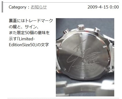 発売の「道上龍選手オリジナル腕時計(50本限定)」です。道上選
