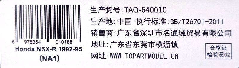 始まったトップアートモデル1/64「TAO-640010 ホンダ NSX-R