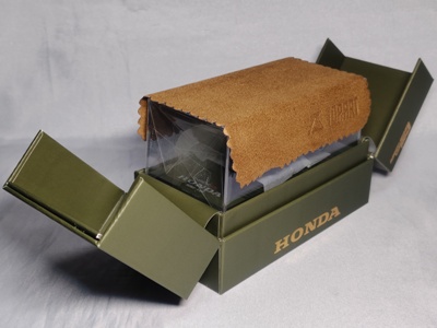 級感を演出するクロスがかかっており、それを取り除くとミニカーと