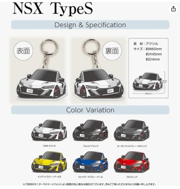 感の海外製の商品。デザインは今風ですが、ロゴは初代NSXのものな