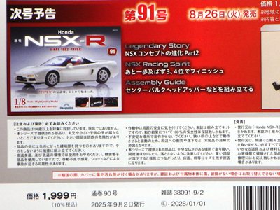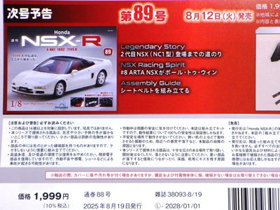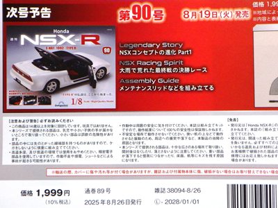 1/8 DEAGOSTINI(デアゴスティーニ)「週刊 Honda NSX-R 1992(NA1)」全国版エコパッケージ 第87〜91号 /各\1,999税込 |