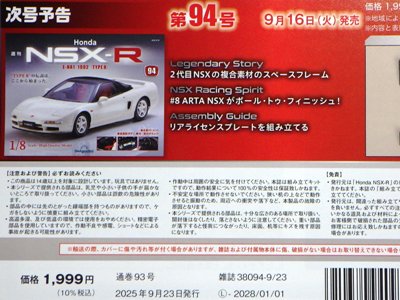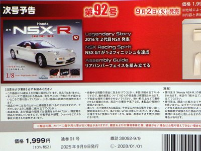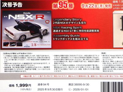 1/8 DEAGOSTINI(デアゴスティーニ)「週刊 Honda NSX-R 1992(NA1)」全国版エコパッケージ 第92〜95号 /各\1,999税込 |