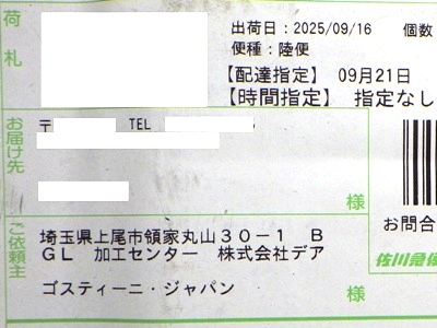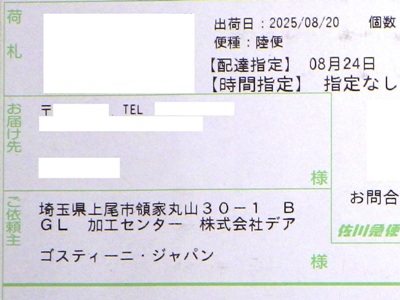 2024年9月18日に発送され、配達日指定日の9月22日に4号セットで届いた。