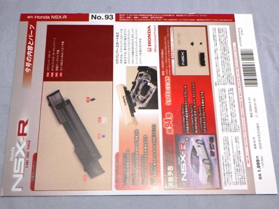 | 1/8 DEAGOSTINI(デアゴスティーニ)「週刊 Honda NSX-R 1992(NA1)」全国版 第3号/\1,999税込 | |