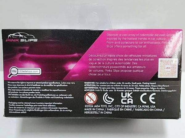 イエローとシルバーは2018年3月ヤフオクで購入。 レッドは2018年7月7日に初登場したものを入手。レッドのみ裏面に日本語のトイザらスのシールが貼られており、正規輸入版であることが分かる。 謎だったサイズは1/55であることが判明(実車の全長は4,430mm、ミニカーの全長は約80mmなので 、そのように判断)。 2018年9月2日に鈴鹿サーキットで1,400円にて販売されているのを確認。1/24も販売していたが1/32は置いてなかった。 |