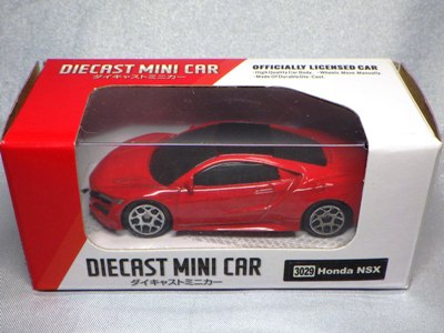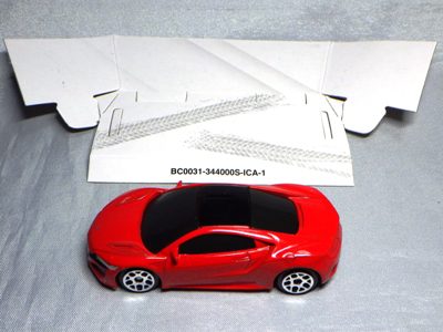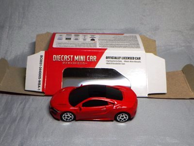 2019年2月25日に、いつもお世話になっている神奈川のコレクターの方から家電量販店のコジマでの発見情報を得て初めて存在を確認。 カプセル玩具のNSXの裏板の白文字タンポ(「MADE IN CHINA」の刻印の下に「H149834」の文字)がない。 地元にコジマの店舗がなく、多くのミニカーを扱っているコジマヤフー店にも商品がなかったので困っていたらAmazonで発見 (Amazonでの取り扱い開始日は2019年1月16日なので、このあたりが発売日か)。 コジマ価格は1,036円、Amazon価格は1,031円。開封しなかったので、ミニカーの画像はコレクターの方から頂いたもの。 2024年6月21日に、ホンダ公式ウェア&グッズオンラインショップに他のジョーゼン製のミニカーやラジコンと共にラインナップされた。 |