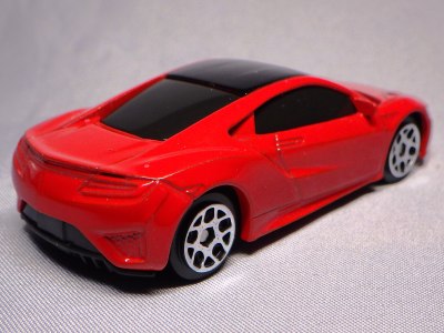 2017年4月8日にヤフオクにブルーが初登場したRMZ City製の1/36新型NSX。その後、ホワイト、レッド、ブラックも出品。 現地では赤いパッケージに入っているようだが、ヤフオクに出品されているRMZ Cityのミニカーのパッケージのほとんどが黄色で(これらは1/64か?)、青色が少々。ヤフオクで出品されたNSXはすべて箱なし。 2017年6月23日にジョーゼンから日本語パッケージでレッドのみ正規発売開始。定価は950円だが、Amazonプライム価格は782円。なぜか左ハンドル仕様。 ちなみにAmazonのレッドモデルの画像ではメッキホイールが装着されているが、実際にはブラックモデルのみメッキホイールで、あとはブラックホイールである。 2024年6月21日に、ホンダ公式ウェア&グッズオンラインショップに他のジョーゼン製のミニカーやラジコンと共にラインナップされた。 |