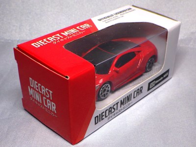 の商品であることが判明。 本来1台300円なのに他車とのセットで3,500円もしたため、楽天で1台380円でバラ売りされているのを見つけて購入したところ、前述のRMZ Cityミニカーとまったく同一の商品であることが判明。 サイズはほぼトミカサイズの7cmでスケールは1/64。ガラス部分はクリアパーツではないが、100均ミニカーのようなチープさはなくトミカに負けない質感がある。ガチャ用のミニパンフ付属。 |
