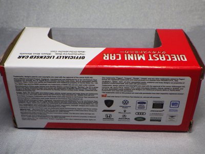 2021年10月23日にヤフオクに出品されたものを落札して入手した(商品名には1/32とあったが明らかに間違い)。 2019年に入手したものとはパッケージデザインが異なり、日本語シールにプリントされた発売元の会社名も「株式会社ハック」から「株式会社エール」に変更されている。 ヤフオクには新旧パッケージが入り交じった状態で多くの車種が出品されているが、旧パッケージの方が多いように見えるので、パッケージが変更になったのは最近なのかもしない。 商品自体はアミューズメント施設の景品か。単品で販売されているような感じではないが、トイザらスには置いてありそう。 箱側面の番号は、「HDW2115」。パッケージ内のミニカーは紙の台座にネジで固定されているため裏板の番号は未確認。 |