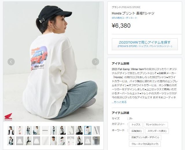 上記のTシャツと同時に2024年4月17日に発売されたホンダとのコラボ商品。 |