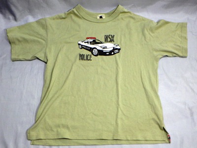 ヤフオクでは昔からサーキットで販売されるホンダや各スポンサーのオフィシャルものやイベントで配付されたもの、オーナーズクラブのオリジナル品など、様々なウェア類が出品されていたが、古着ブームの影響か、最近古着の出品が増えてきた印象 。 この商品もその一つでエフオーキッズとホンダの初コラボグッズのNSXパトカーキッズTシャツ。 調べたところグレーのスーパーカブなどと同時に発売されたようでNSXのカラーはミントとのこと。 ちなみにS600はレッド、CR-Vはキナリ(黄色がかった白)。 素材は綿100%(リブ部は綿95%/ポリウレタン5%)。 サイズは90cm(2歳前後)、100cm(3歳前後)、110cm(4〜5歳前後)、120cm(5〜6歳前後)、130cm(6〜7歳前後)、140cm(8歳前後)の8種。 定価は2,190円だが、現在も1,094〜1,771円で新品を販売しているショップがある。 在庫僅かなので欲しい方はお急ぎを。